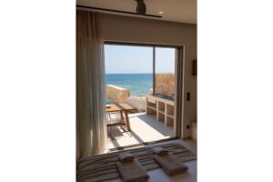 The bedroom is on the same level as the private pool, offering direct access to the water and to the sea, which lies just a few steps away from your bed.Afanti Suite is a bright, elegantly designed open-plan space, where minimal aesthetics meet natural tranquility.