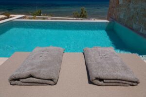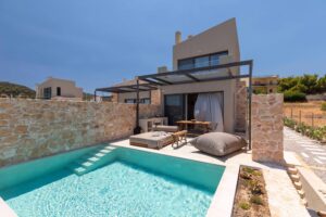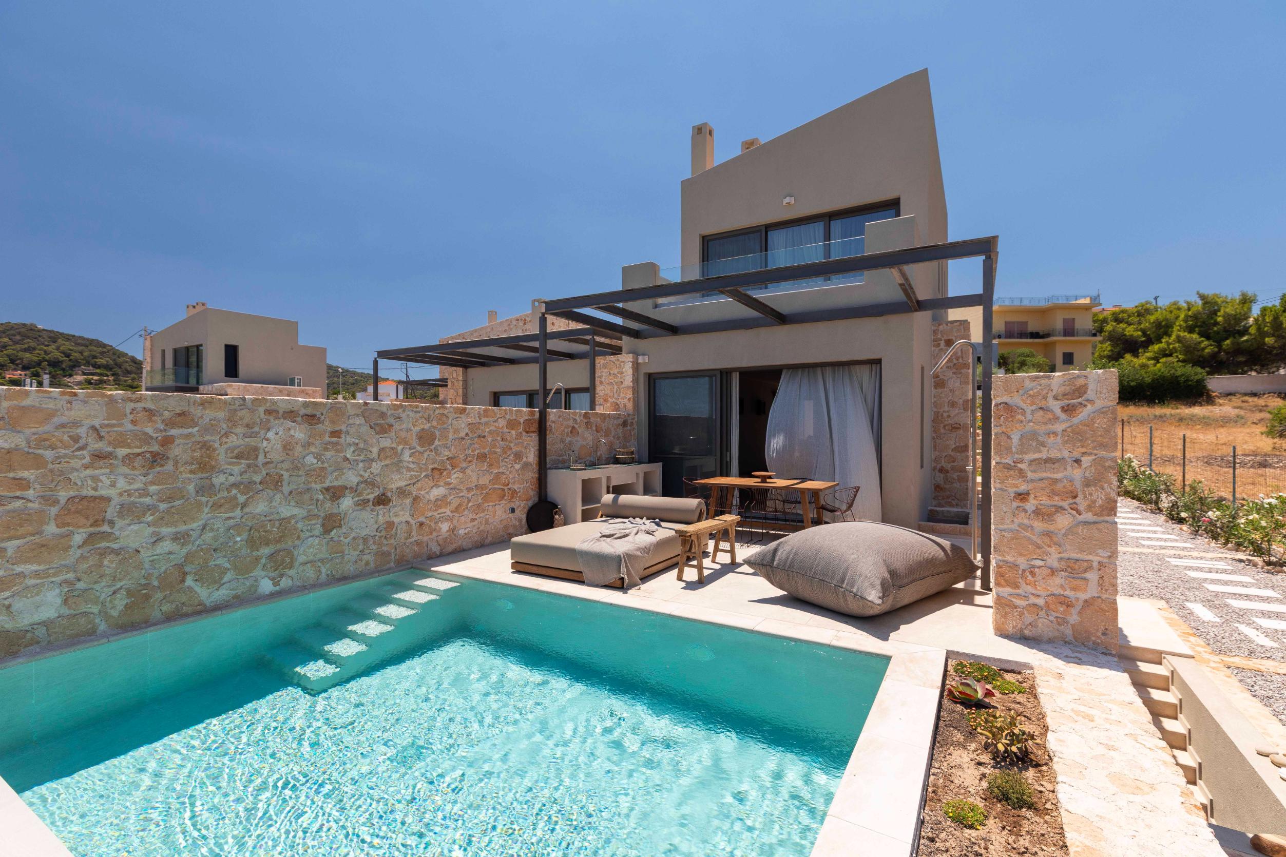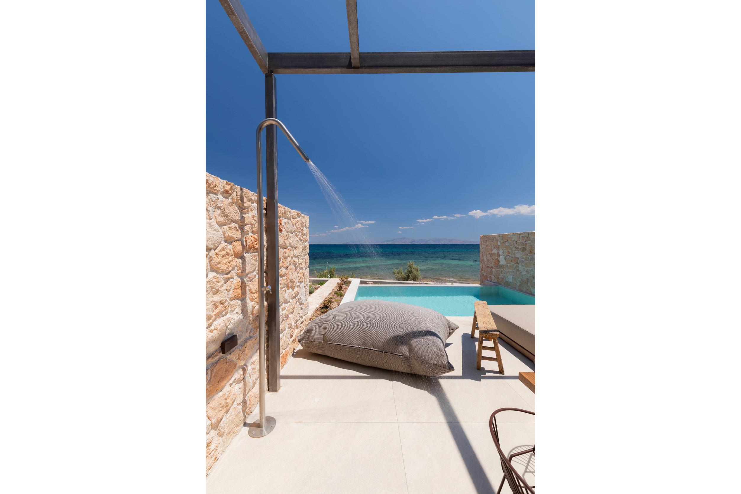 Η σουίτα διαθέτει πλήρως εξοπλισμένη κουζίνα, ιδιωτική πισίνα και εξωτερικό καθιστικό με BBQ για ξεκούραστες στιγμές κοντά στη φύση και στη θάλασσα.